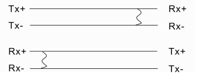 | Signals | Tx+, Tx-, Rx+, Rx- (full duplex) |