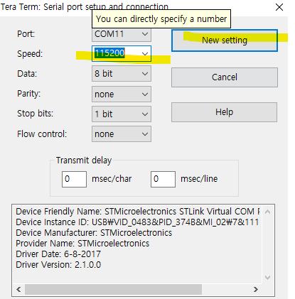 내가 사용하는 STM32F429ZI 보드는 MCU 파트와 ST-Link 파트가 UART 인터페이스로 연결되어있고 ST-Link 파트는 PC와 USB 인터페이스로 연결되어있기 때문에 다른 모듈을 사용할 필요 없이 마이크로 5핀 케이블을 꼽는 것 만으로 PC와 UART 통신이 가능하다.