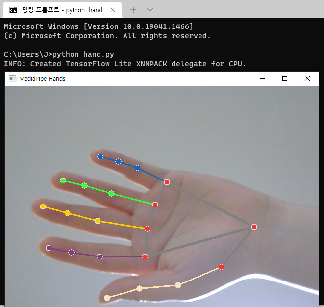 hand tracking이 제대로 실행 되는 것을 확인할 수 있다.