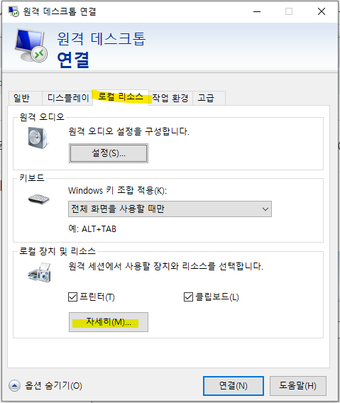 로컬 리소스 - 로컬 장치 및 리소소스 - 자세히... 클릭