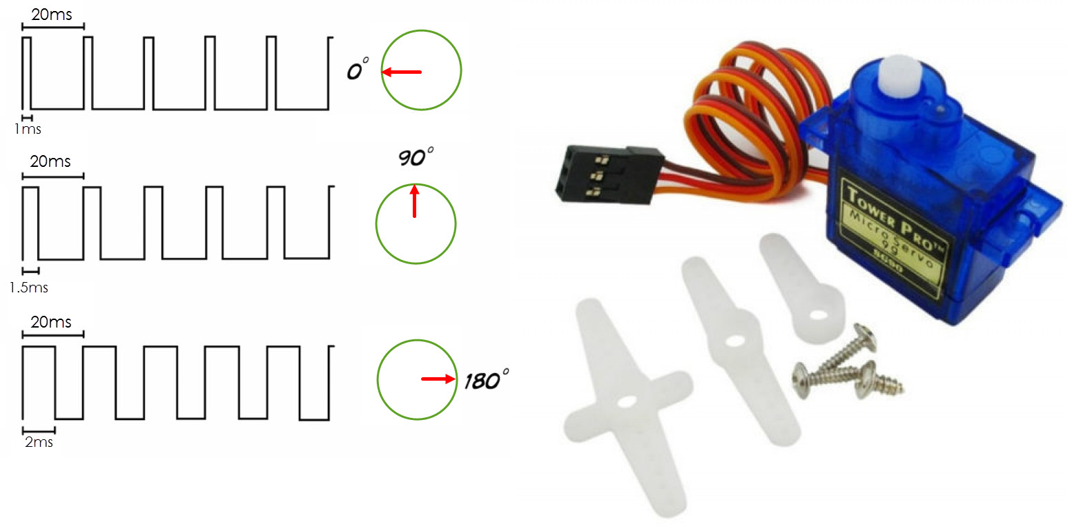 사용한 모델은 SG90, 이 서보모터는 0도부터 180도까지 동작할 수 있다.