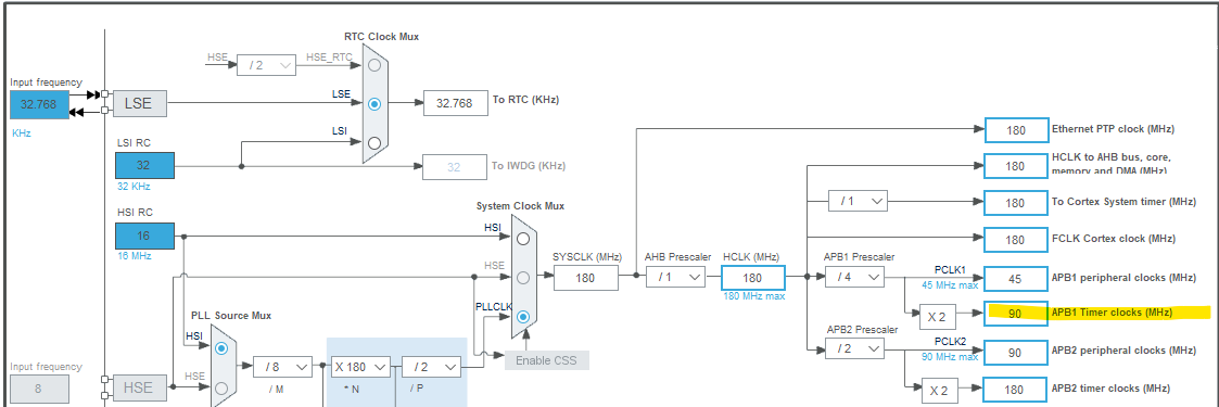 내가 사용할 TIM2가 쓰는 클락은 APB1이다.