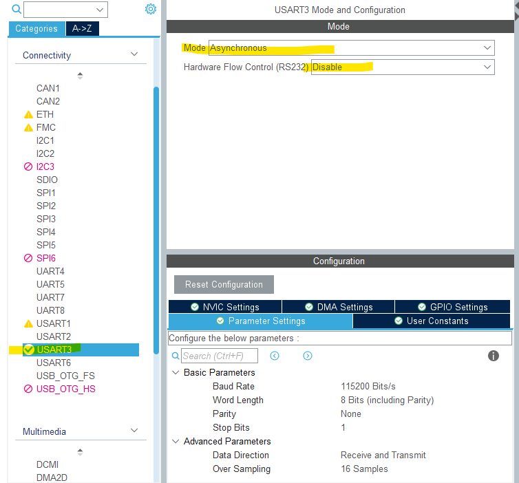 Parameter는 디폴트로 놔두고 폴링방식을 사용할거면 NVIC 세팅을 켜주지 않아도 된다.