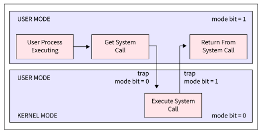 커널은 운영체제의 핵심 부분이므로 응용프로그램이 커널에 직접 접근하지 못하도록 두가지 모드가 존재한다.
