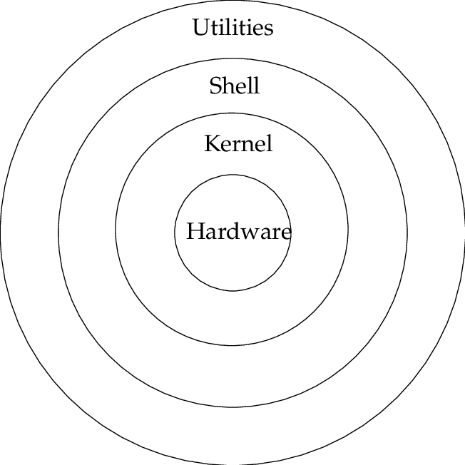 커널은 하드웨어를 둘러싸고 제어한다. 그리고 사용자가 커널과 상호작용할 수 있도록 인터페이스를 제공하는 것은 바로 쉘이다.