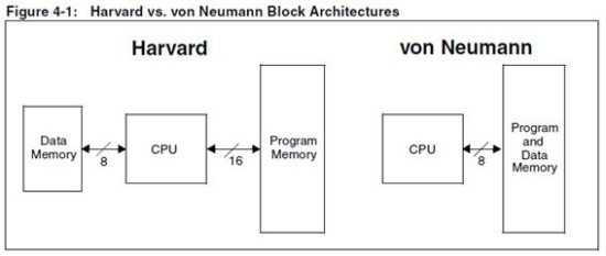 데이터 버스 : 주소 버스를 사용하여 마이크로초 내에서 기억장치, 입출력 장치 등의 외부 장치들과의 데이터 통신을 하는 버스 형태로, 한번에 전송할 수 있는 비트의 수를 정의하며 양방향 통신을 한다. 폰 노이만 구조에서는 명령어와 데이터가 하나의 메모리 공간과 하나의 데이터 버스를 공유하지만, 하버드 구조에서는 명령어와 데이터가 물리적으로 분리된 메모리와 버스를 가진다.