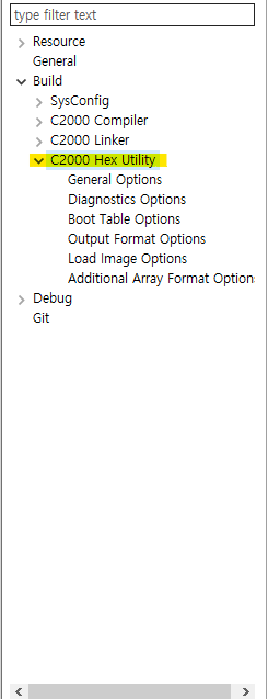 프로젝트 우클릭 - C2000 Hex Utility