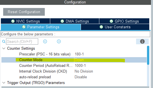 Down Counting mode 는 처음을 ARR 값에서 시작해서 0에 도달하면 underflow가 나고 다시 ARR 값으로 되돌아오는 구조라서 이렇게하면 내가 중간에 ARR값을 조정했을 때 그 다음 주기부터 새 ARR 값이 적용 될 것이다. 코드는 바꿀 필요 없다.
