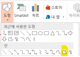 자유형을 클릭한 뒤 shift를 누른채로 시작점과 연결점, 끝점을 찍어 아래와 같은 자유형 선을 만든다.