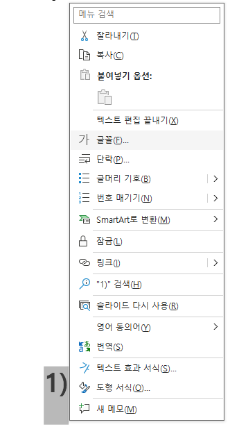각주 달 텍스트를 드래그하여 선택 후 우클릭 - 글꼴