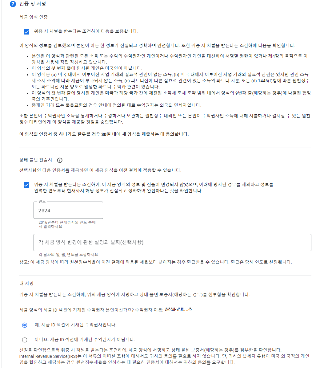 애드센스 미국 세금 정보 양식 제출하기