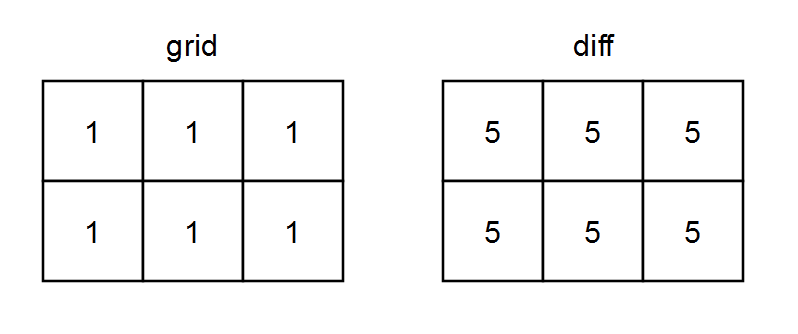 - Input: grid = [[1,1,1],[1,1,1]]