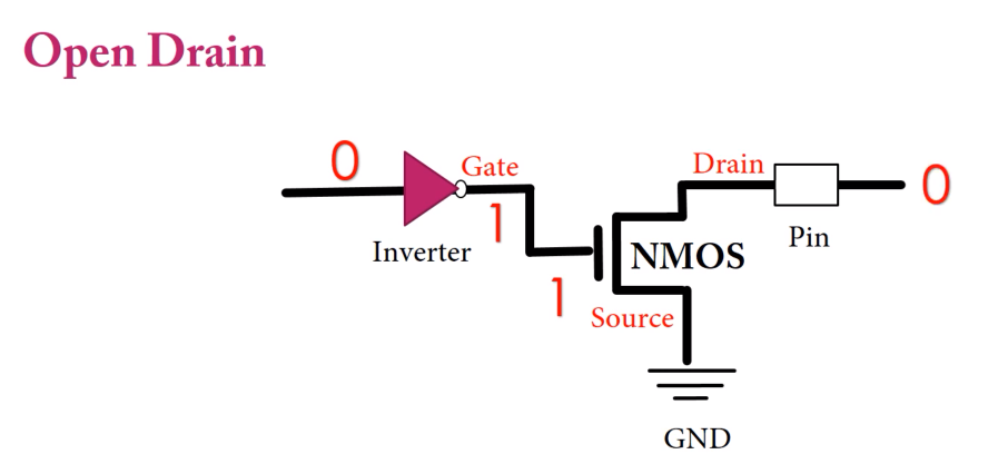 또한 오픈드레인은 I2C버스를 구성하는데도 쓰인다.