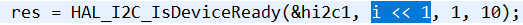 res = HAL_I2C_IsDeviceReady(&hi2c1, i << 1, 1, 10);