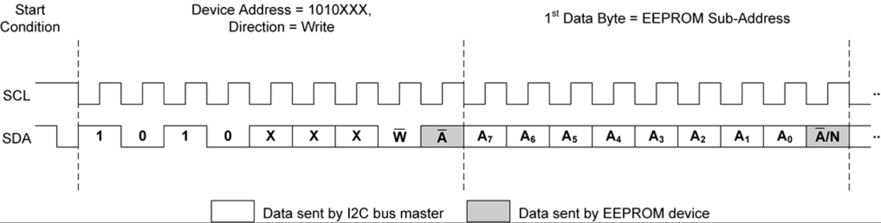 Start 조건 : 마스터가 SDA를 LOW로 하고 약간의 시간차를 두고 SCL을 LOW로 한다.
