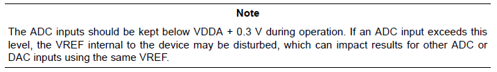 그리고 참고로 ADC 입력의 경우 정상동작 하려면 VDDA + 0.3V 이하로 유지되어야 한다.