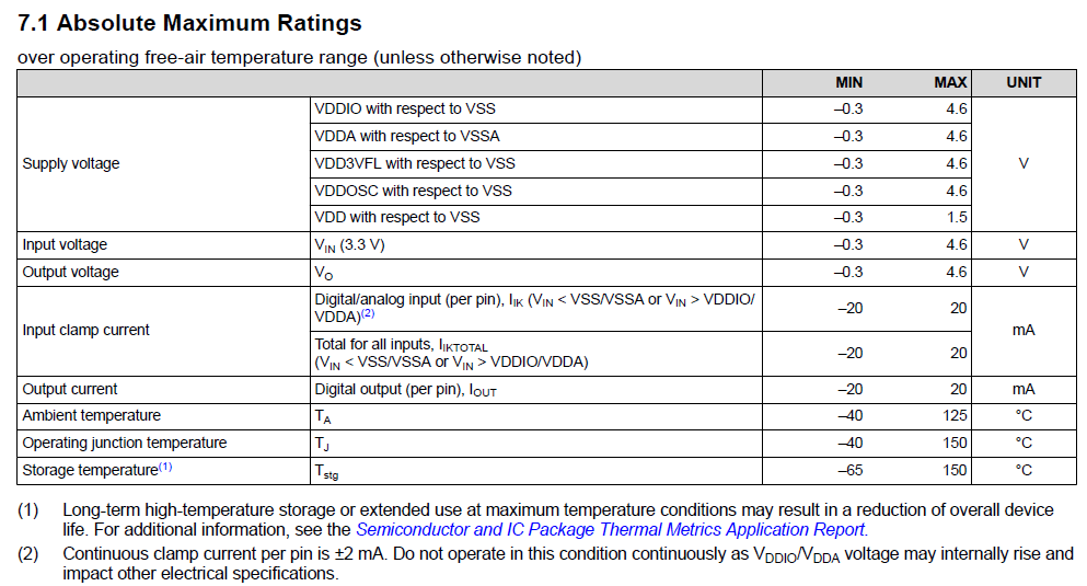 Operating Voltage가 3.3V인 MCU 중 5V tolerant I/O인 경우도 있다는데 얘는 아니다. 일단 Input voltage의 Maximum rating이 4.6V이다.