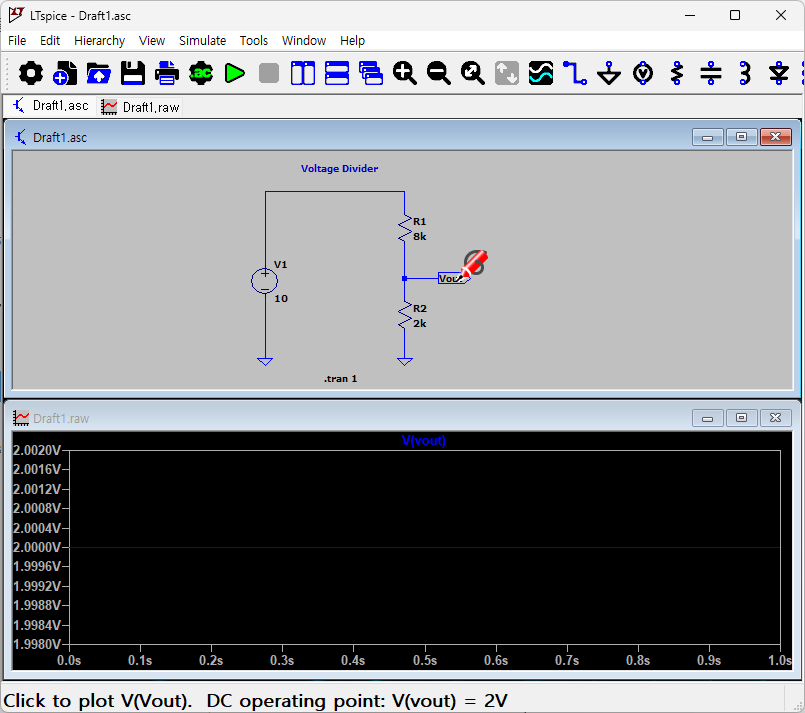 Voltage Source는 DC 10V, R1 8k, R2 2k로 설정하였다.