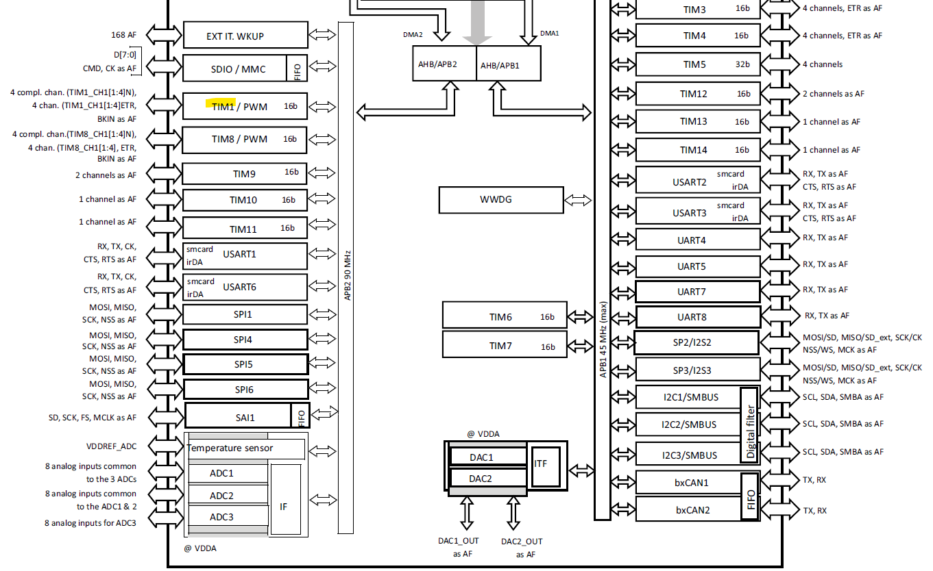 TIM1는 APB2에서 클락을 공급받는다.