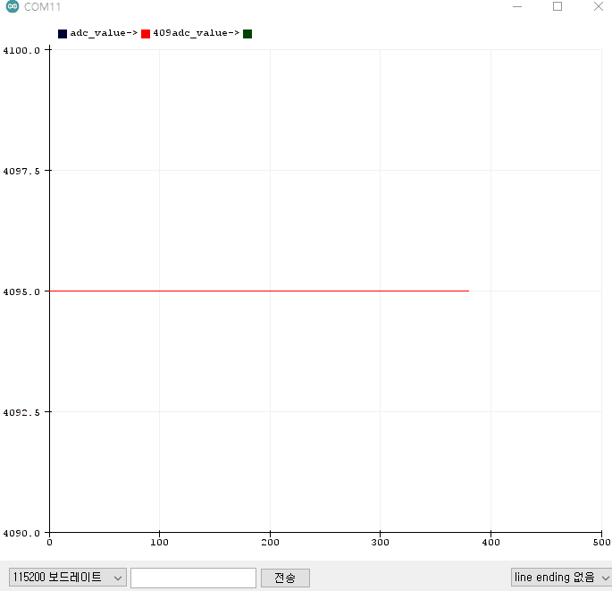 시리얼 모니터 대신 시리얼 플로터를 열고 그래프로 printf문에 있는 변수값을 확인할 수 있다.