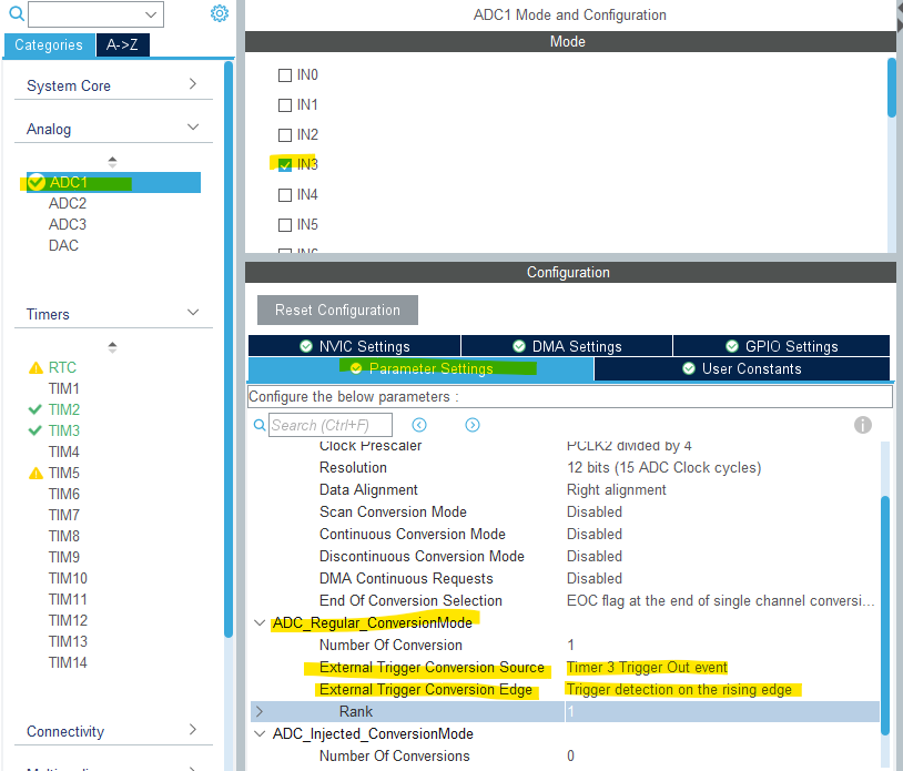 ADC를 인터럽트방식으로 사용하면 끊임없이 인터럽트가 트리거되어 다른 부분에 문제를 일으킨다. Timer 인터럽트와 ADC 폴링방식을 사용하여 ADC의 샘플링 주기를 조절하는 방법을 소개한다.