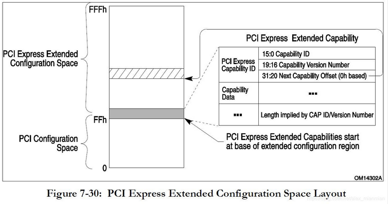 다음 PCI Express Extended Capabilities는 PCI Configuration space가 끝나는 다음 위치인 0x100 위치에서 시작하며 일반 PCI Capability와 달리 2바이트의 ID를 가지고 4bit의 버전 넘버 다음에 12비트의 Next Capability를 가리키는 포인터가 오는 것을 알 수 있다.