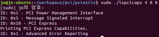 구입한 SW562 PCIe 카드의 경우 ID 0x1, 0x5, 0x10의 PCI Capabilities가 있고 ID 0x1의 PCI Express Extended Capabilities가 있는 것을 확인할 수 있었다.