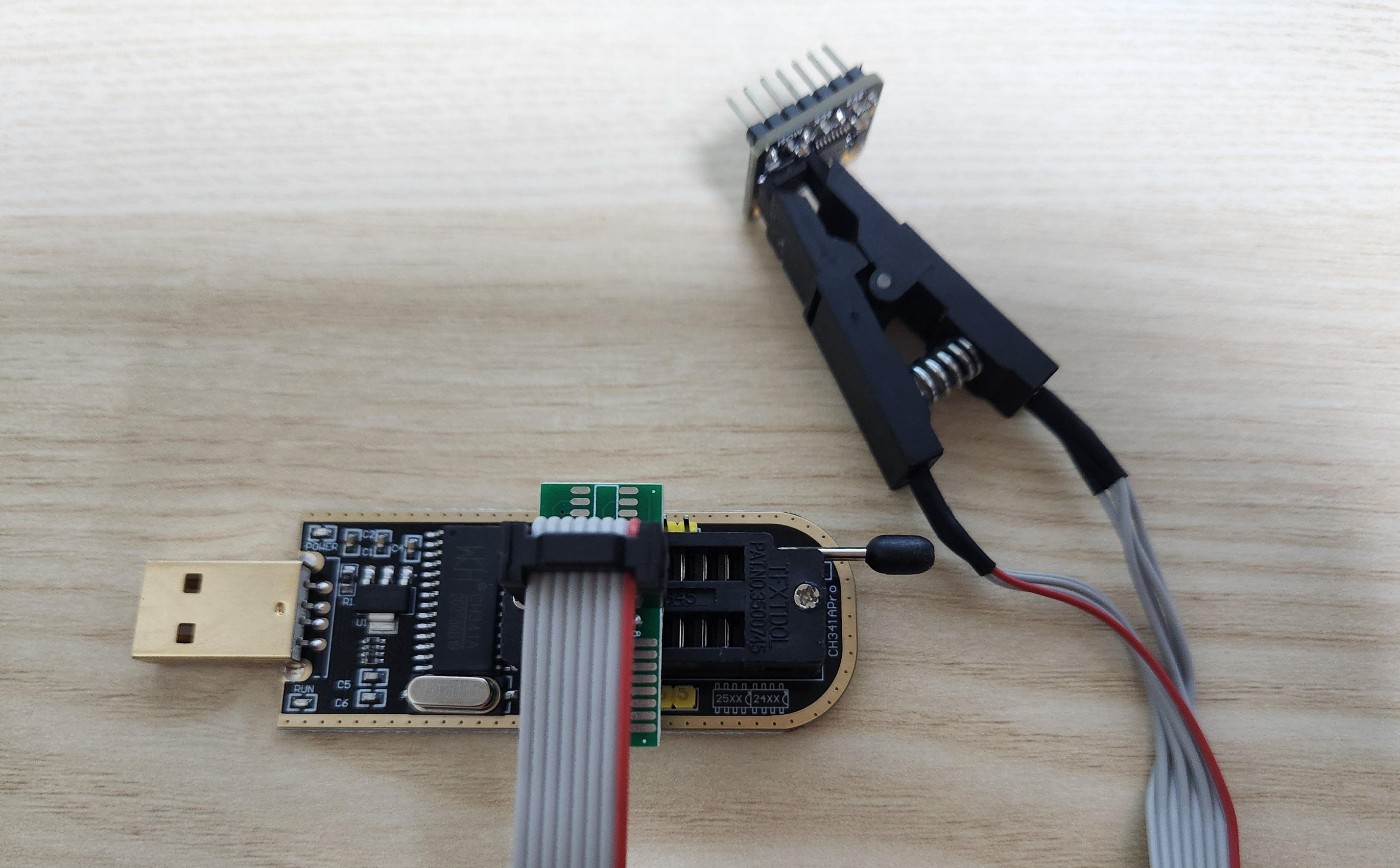 2. 칩이 장착된 CH341A를 PC USB 포트에 연결한다.