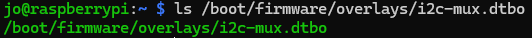 i2c-mux-pca954x 드라이버를 지원하는 오버레이 파일 역시 i2c-mux.dtbo라는 이름으로 존재한다.