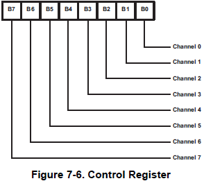 - Control Register에 값을 쓰면 I2C 버스에서 Stop 조건이 발생한 직후 해당 채널 설정이 활성화된다.