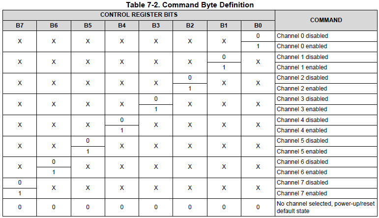 - I2C 명령을 통해 원하는 채널을 선택하거나 여러 채널을 동시에 선택할 수 있음