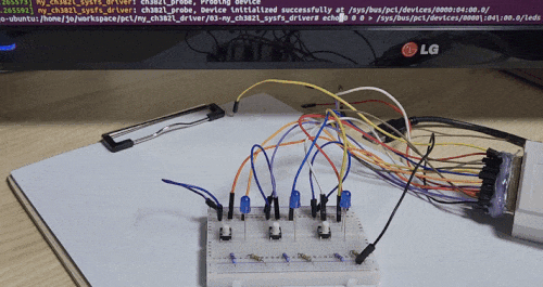 모듈을 로드한 뒤 확인해보면 /sys/bus/pci/devices/<dev_name>/ 경로에 buttons와 leds 파일이 생성된 것을 볼 수 있다.