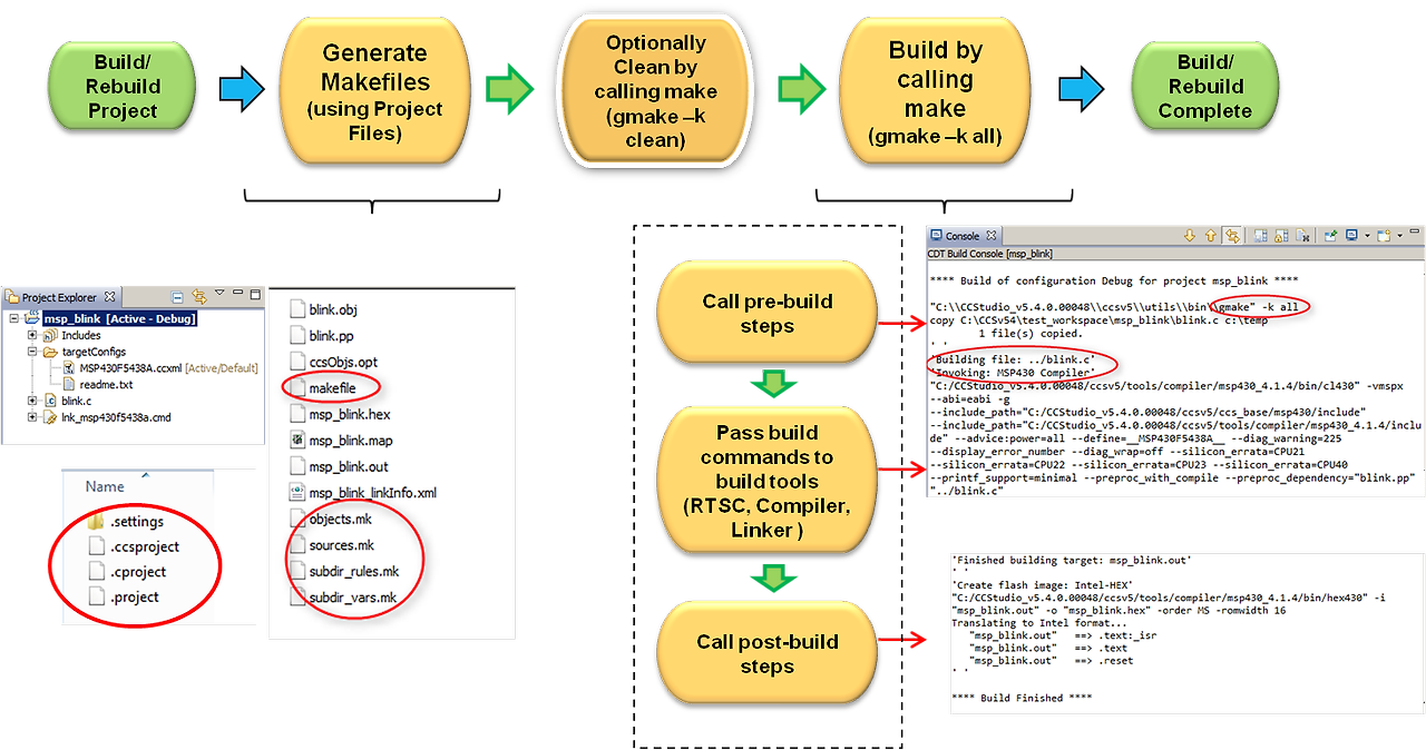 CCS에서 프로젝트를 Build하거나 Rebuild 할 때 다음의 절차를 수행한다.